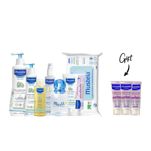 MustelaAll you Need as a New born Mustela Normal Skin Cleansing gel 500ML Mustela Normal Skin Body Lotion 300ML Mustela Baby Oil 100ML Mustela Cleansing W...