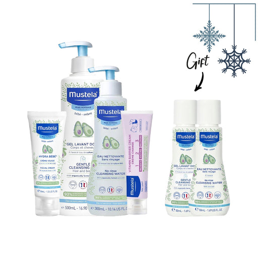 MustelaMustela gentle 2in1 cleansing gel 500ml Mustela vitamin barrier cream 50ml Mustela no rinse cleansing water 300 Mustela Face Cream 40ML free Mustel...